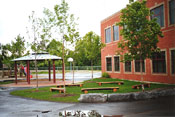 Informal spaces for quiet pursuits can be easily and inexpensively created by using a few rocks and logs for seating and trees for shade. High school students can design their own green social spaces. Checkerboard gardens with alternating squares of patio stones and soil can provide a place for kindergarten and primary children to plant their own small plots. Schools with extensive grounds can transform lawn into nature trails which could then be used for snowshoeing or cross-country skiing.