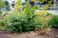 Planting non-native, non-invasive trees and other plants in difficult spots can help to improve conditions for native species planted in other locations on the site. Non-native species that tolerate hard-surface, urban conditions can be planted along the edges of schoolyards next to roadways. They can serve as a windbreak and help to block salt spray from traffic in Winter and cool and moisturize the air in Summer. This will help improve growing conditions for native species planted further back from the road.